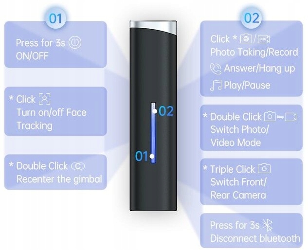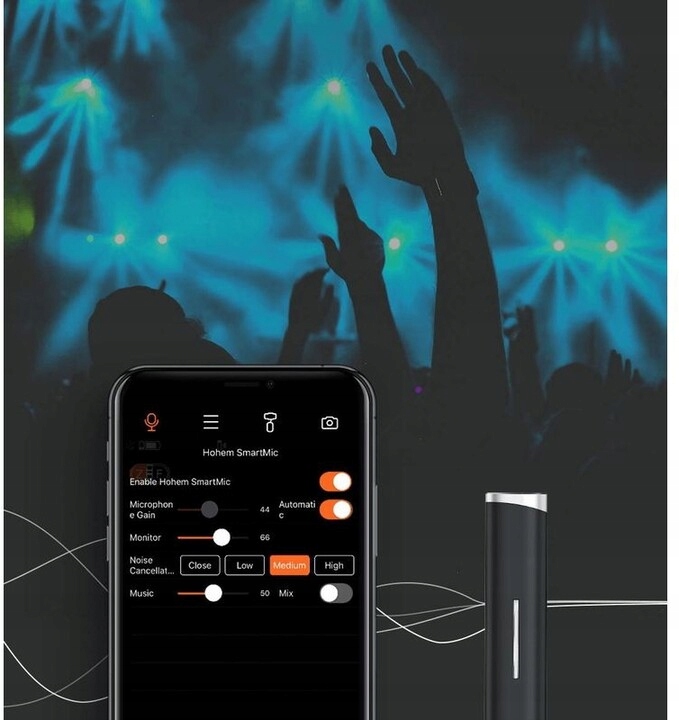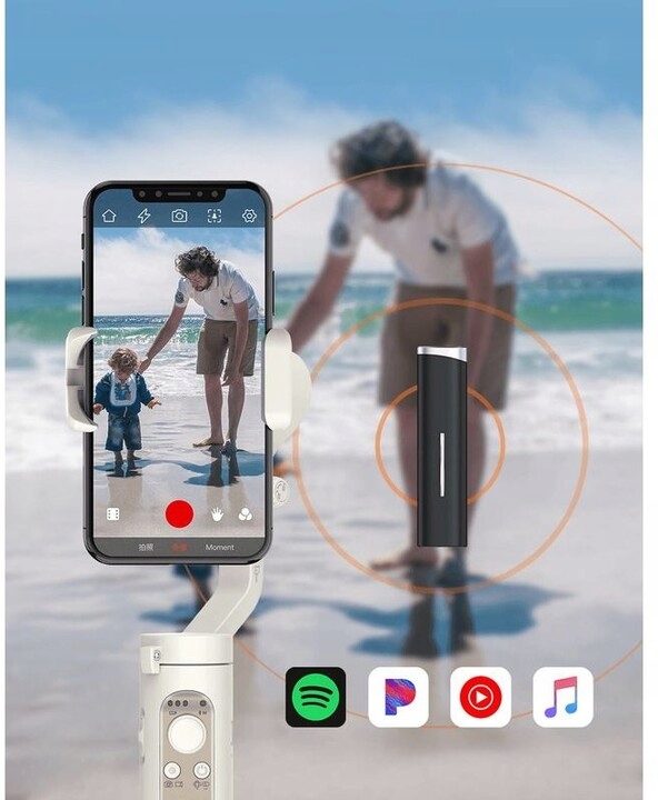 Mikrofon Hohem służy również jako pilot zdalnego sterowania do robienia zdjęć, nagrywania wideo, sterowania gimbalem i odbierania połączeń telefonicznych. Jest kompatybilny z gimbalem iSteady X/iSteady Mobile+ oraz aplikacjami Hohem Pro/Hohem Gimbal.