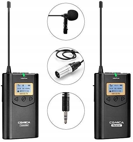 CVM-WM 100 to zestaw do bezprzewodowego przesyłania dźwięku na odległość do 100 metrów. W skład kompletu wchodzi: nadajnik, odbiornik, mikrofon lavalier ze złączem 3,5 mm, miękki futerał i akcesoria, takie jak osłona przeciwwietrzna, adapter 3,5 mm-XLR oraz mocowania na stopkę aparatu / kamery do nadajnika i odbiornika. Do prawidłowego działania zestawy wystarczy wybrać jeden z 48 dostępnych kanałów i sparować nadajnik z odbiornikiem.