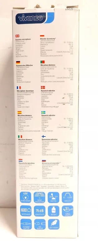MIKROFON DM 20 VIVANCO KARAOKE DYNAMICZNY