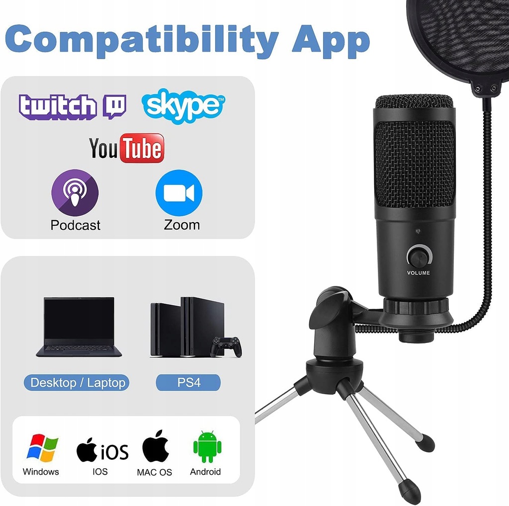 - Szeroki zakres zastosowań: ten czuły mikrofon biurkowy może wysyłać wyraźne głosy, co jest bardzo odpowiednie do podcastingu, czatu Skype i rozmowy z przyjaciółmi podczas odtwarzania i przesyłania strumieniowego multimediów. Działa dobrze w podcastach, audycjach, nagraniach muzycznych, konferencjach online, przeróbkach głosów do filmów, instrumentów muzycznych, wywiadów, nagrań, wideokonferencji, gier, czatów online (takich jak Facebook, MSN, Skype itp.) z najlepszą jakością dźwięku.