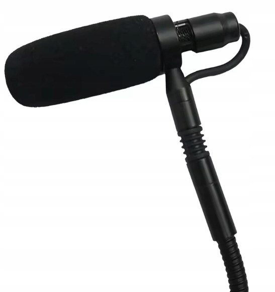 - Wysokiej jakości kondensatorowy mikrofon kierunkowy