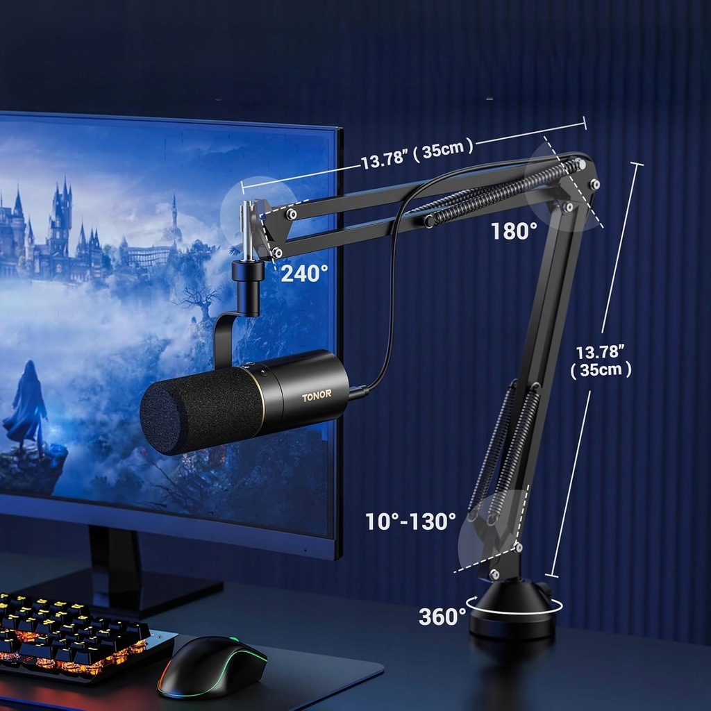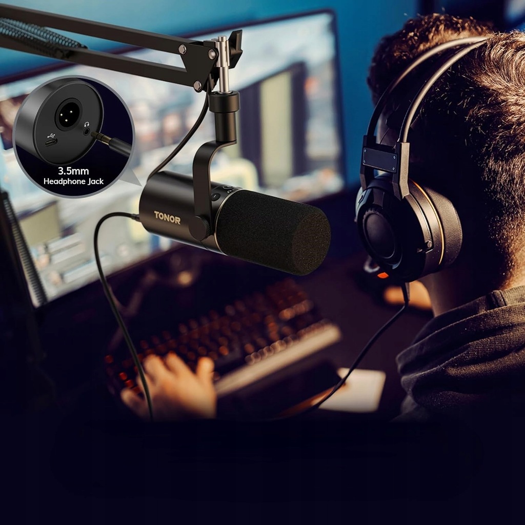 Mikrofon TONOR USB/XLR Dynamiczny z Wysięgnikiem – Idealny do Podcastów i Streamingu