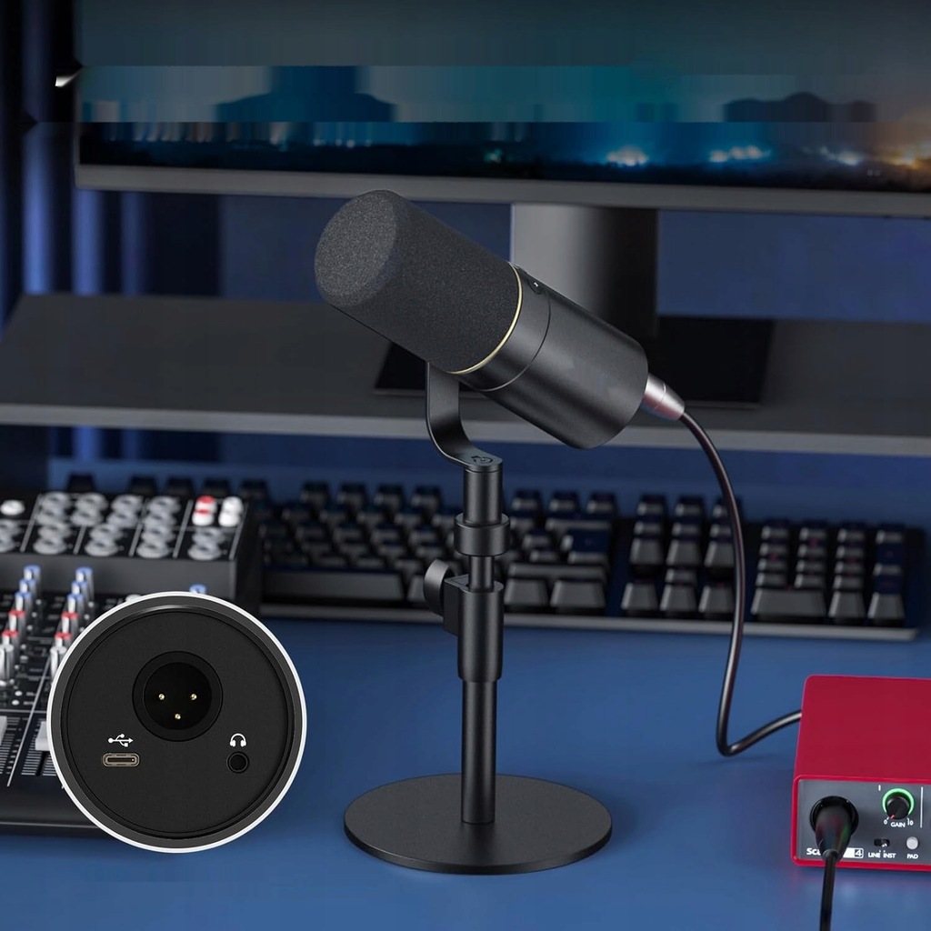Wyjście USB i XLR: Mikrofon obsługuje zarówno wyjścia USB, jak i XLR, co umożliwia łatwe nagrywanie na komputerze w trybie plug-and-play. Tryb XLR dostarcza bardziej przestrzennego dźwięku, idealnego do profesjonalnych podcastów i produkcji muzycznych. Dodatkowo, można go podłączyć do interfejsu audio lub miksera, co zwiększa możliwości profesjonalnych nagrań.