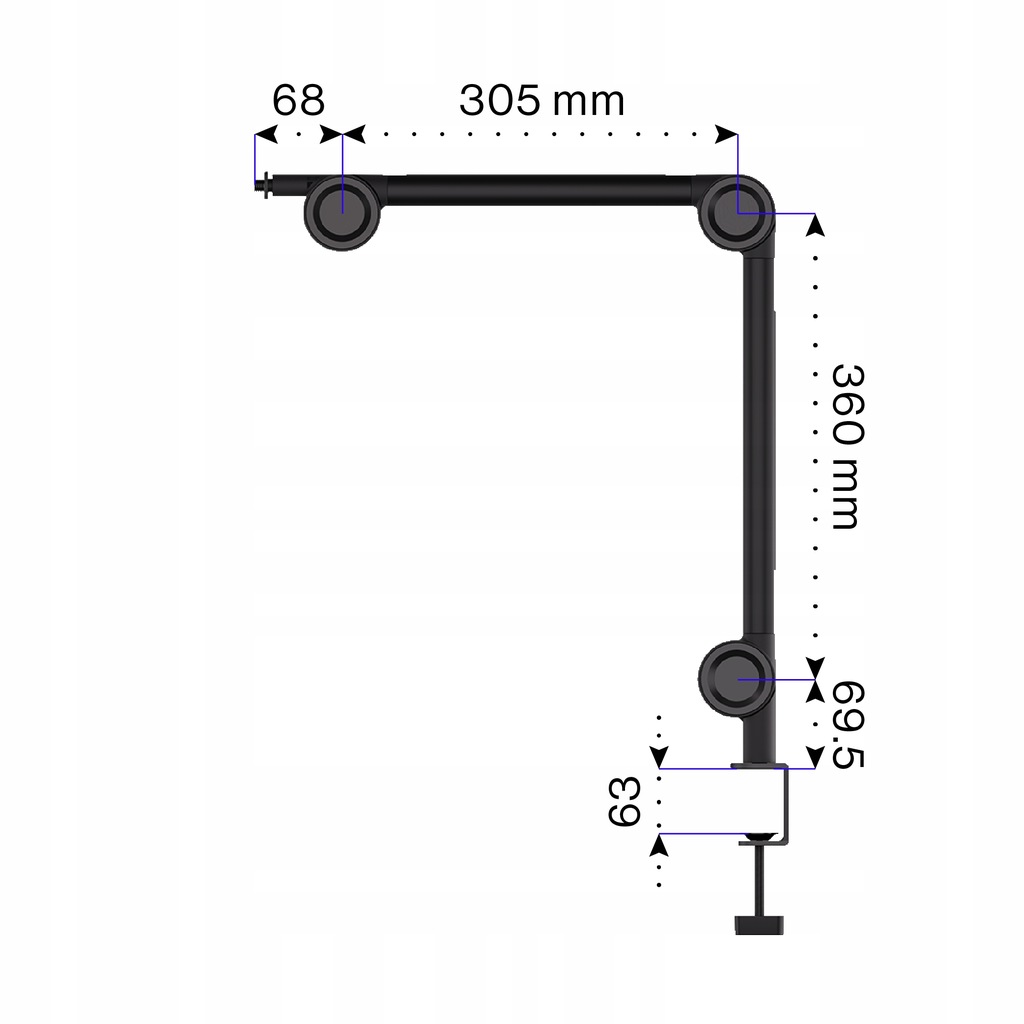- Sposób mocowania: Ramię biurkowe