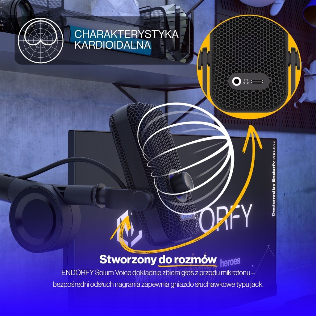 Solum Voice pracuje w trybie kardioidalnym – dokładnie zbiera głos z przodu mikrofonu, co pozwala zredukować hałasy w tle. Z myślą o streamach i podcastach został również zaopatrzony w gniazdo słuchawkowe typu jack, dzięki któremu uzyskasz bezpośredni odsłuch nagrania.