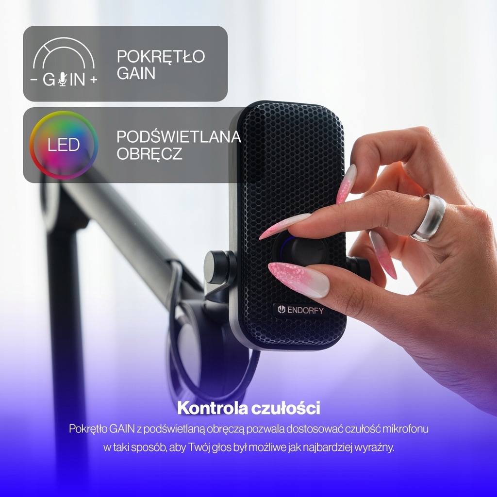 - Dołączone akcesoria: Regulowane ramię / Filtr z pianki / Przewód USB-C / Adapter USB-A