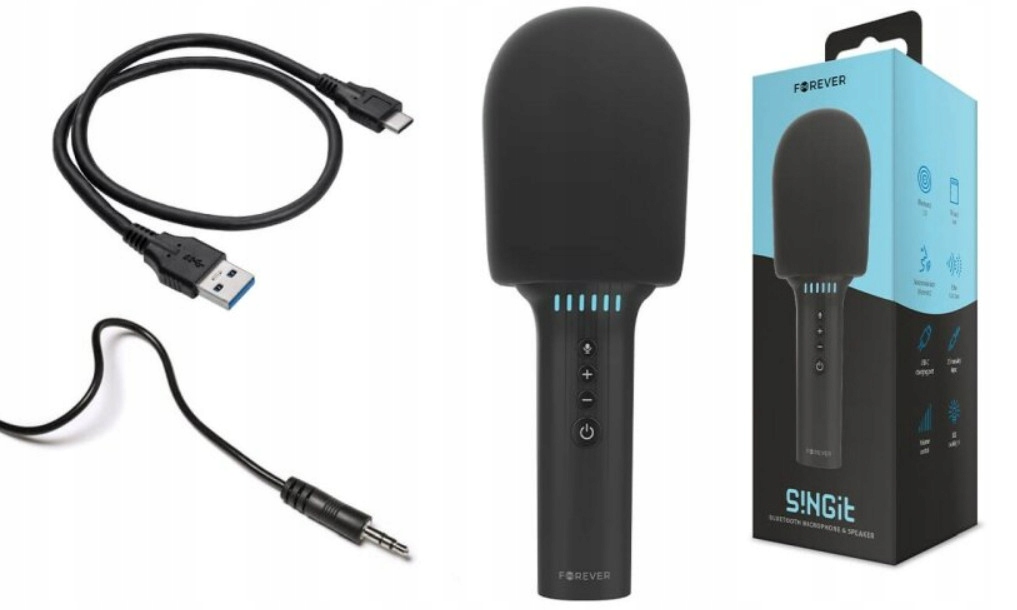 Złap za mikrofon Forever BMS-500 S!NGit z wbudowanym głośnikiem i śpiewaj! Podkład muzyczny odtwarza się razem z wokalem. Kompaktowy rozmiar urządzenia pozwala zorganizować rozśpiewaną imprezę wszędzie – u znajomych, na wakacjach lub na rodzinnym pikniku.