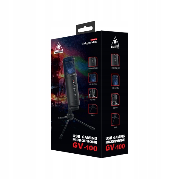 W zestawie: Mikrofon USB, Statyw, Kabel USB, Uchwyt na mikrofon, Filtr na mikrofon