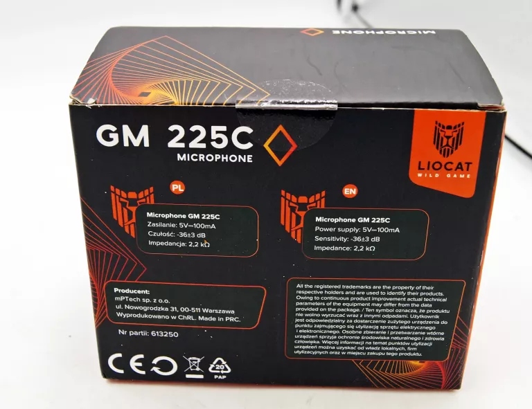 MIKROFON GAMINGOWY LIOCAT GM 225C STAN:FABRYCZNIE ZAPAKOWANY