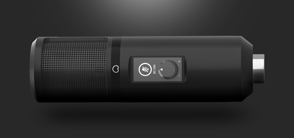 - Pokrętło wzmocnienia oraz przycisk mute - kontroluj mikrofon i ustawgo jak uważasz