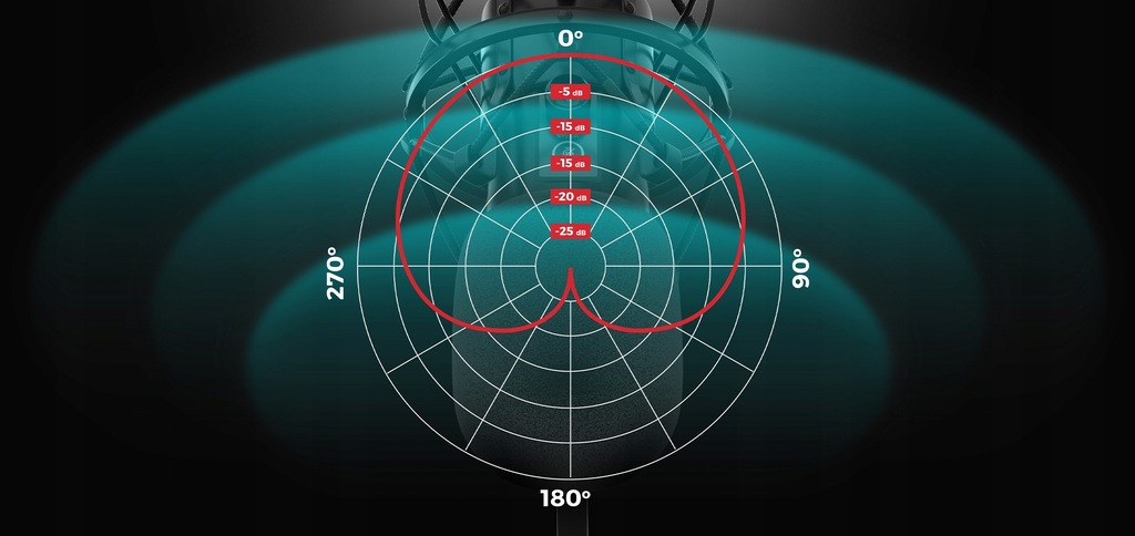 Genesis Radium 400 G2 to mikrofon o charakterystyce kardioidalnej. Dzięki temu rejestruje on dźwięki dochodzące z konkretnego kierunku (przodu i boków), a nie tyłu urządzenia. W praktyce zapewnia to niwelację niepożądanych odgłosów z otoczenia i większą kontrolę nad brzmieniem.