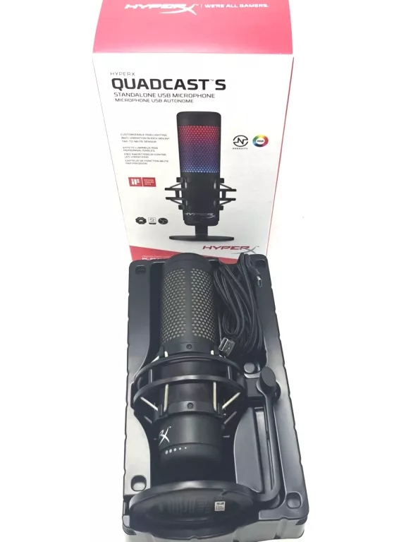 HyperX QuadCast S to mikrofon pojemnościowy ze złączem USB, który zachwyci Cię swoim brzmienie i wyglądem. Stylowe podświetlenie mikrofonu możesz dostosować przy użyciu oprogramowania HyperX NGENUITY. Doda ono atrakcyjności każdej transmisji i scenografii.