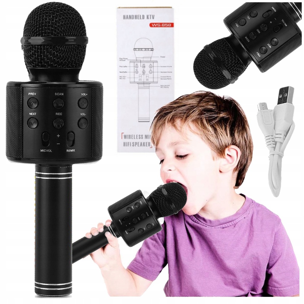 MIKROFON KARAOKE BLUETOOTH BEZPRZEWODOWY DLA DZIECI GŁOŚNIK IMPREZA USB SD