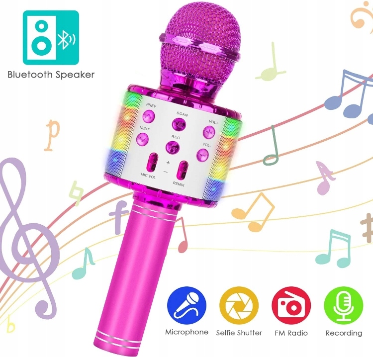 MIKROFON KARAOKE BEZPRZEWODOWY GŁOŚNIK BLUETOOTH RÓŻOWY