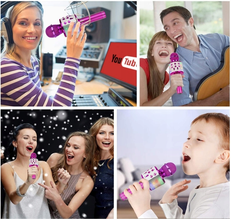 Mikrofon Karaoke z bezprzewodowym głośnikami Bluetooth Różowy,