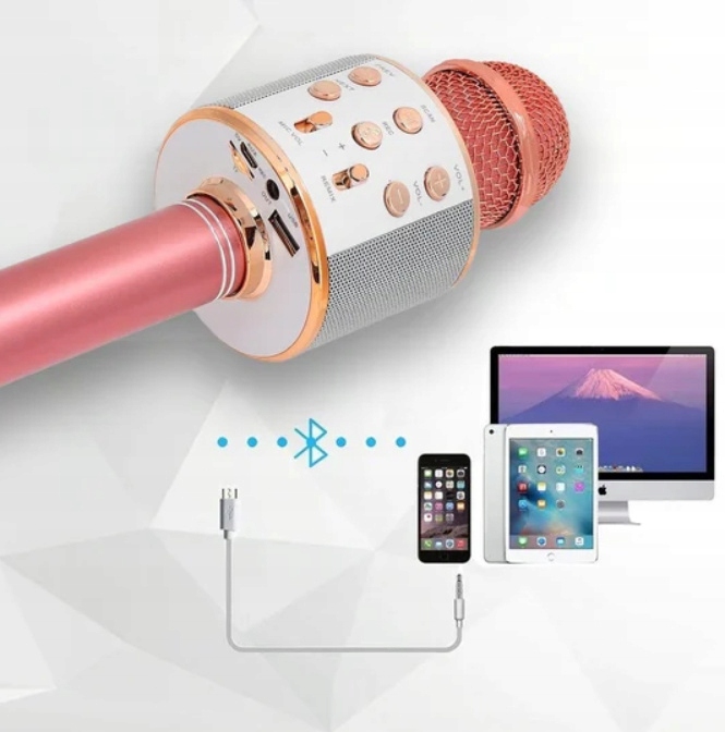 Mikrofon Karaoke Bluetooth LED RGB to wyjątkowy produkt, który obudzi w Tobie pasję do śpiewu. Jego stylowy różowo-złoty design oraz funkcje świetlne sprawiają, że jest idealnym wyborem zarówno dla dzieci, jak i dorosłych. Dzięki technologii Bluetooth możesz łatwo podłączyć mikrofon do swojego smartfona lub tabletu, co pozwala na cieszenie się ulubionymi utworami w dowolnym miejscu.