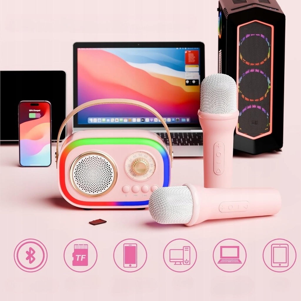 Zestaw Karaoke Bluetooth z 2 Mikrofonami – Śpiewaj Razem i Baw się Świetnie! �🎉