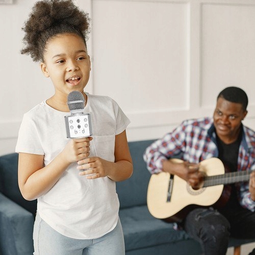 Poczuj się jak gwiazda estrady i baw się wyśmienicie! Multifunkcjonalny mikrofon do karaoke zapewni świetną rozrywkę dzieciom i dorosłym. A być może również obudzi zainteresowanie śpiewem, stanie się inspiracją i wpłynie na dalszą dziecięcą przyszłość i podążanie ścieżką kariery muzycznej.