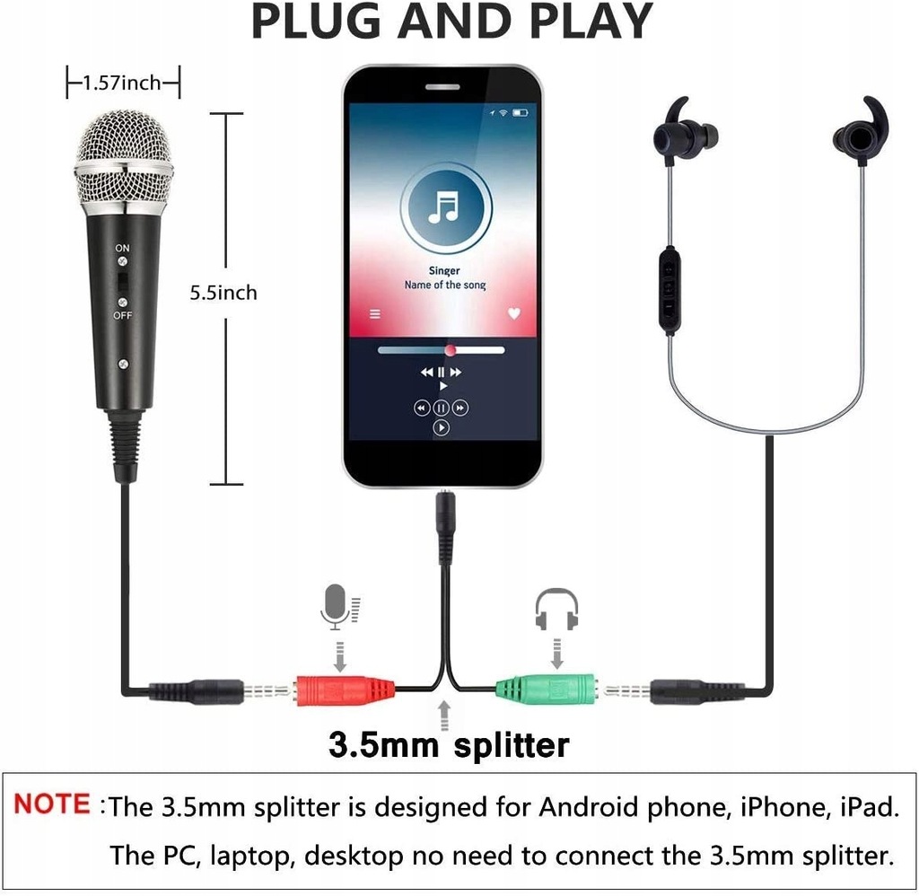 Plug & Play: Możesz podłączyć przewodowy telefon lub komputer bezpośrednio do gniazda 3,5 mm i mieć czysty dźwięk, możesz rozmawiać i śpiewać w dowolnym miejscu i czasie.