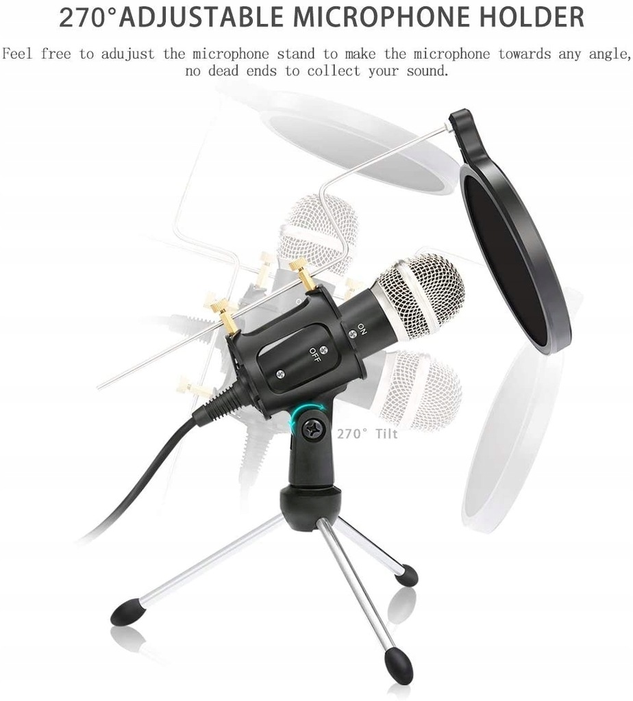 Ze składanym statywem: Ultrakompaktowa konstrukcja zapewniająca maksymalną przenośność, bardzo wygodna i praktyczna. Mikrofon pojemnościowy jest dostarczany ze statywem stołowym. Nie musisz szukać innego statywu. mikrofon można zamontować na biurku.