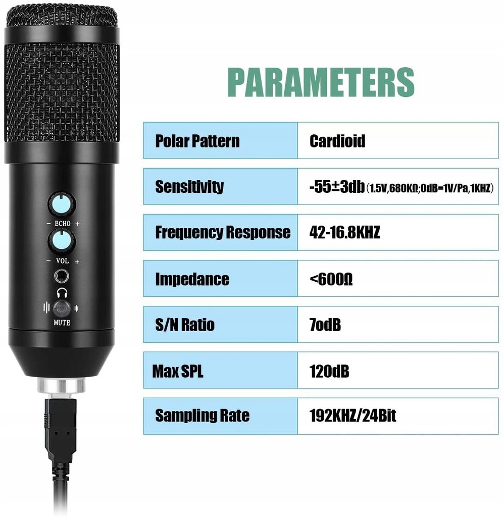 - Wysokiej jakości kabel mikrofonowy o niskim poziomie szumów, długi na 2,5m, z 3-pinowym złączem XLR.