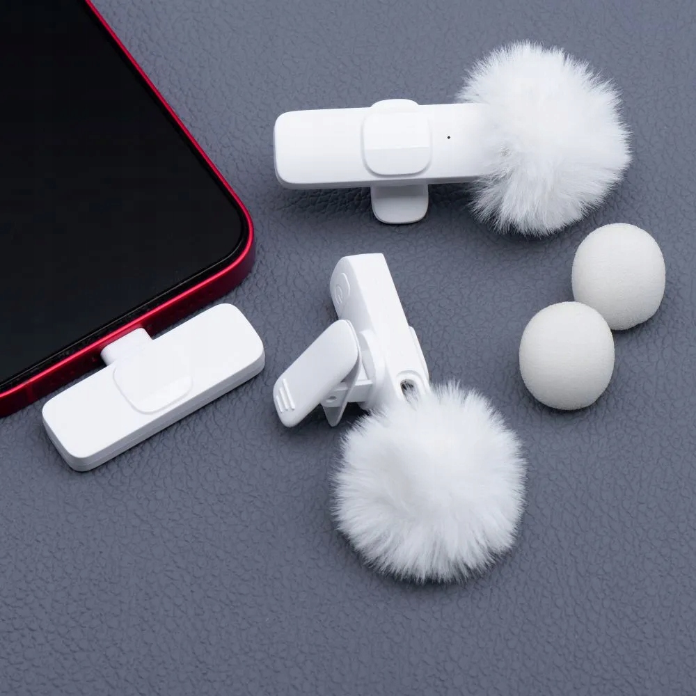 Mikrofon krawatowy bezprzewodowy Lightning podwójny z długim włosiem (2 w zestawie) K1 biały