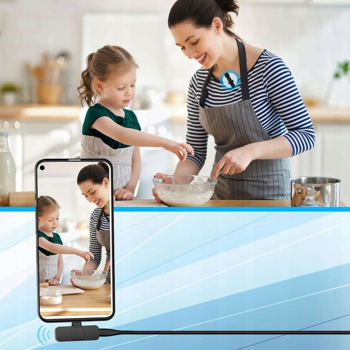 ✅ Mikrofon automatycznie łączą się bezprzewodowo z odbiornikiem po wpięciu go do portu USB-C typ C w telefonie, smartfonie lub tablecie, oferując wygodę użytkowania.