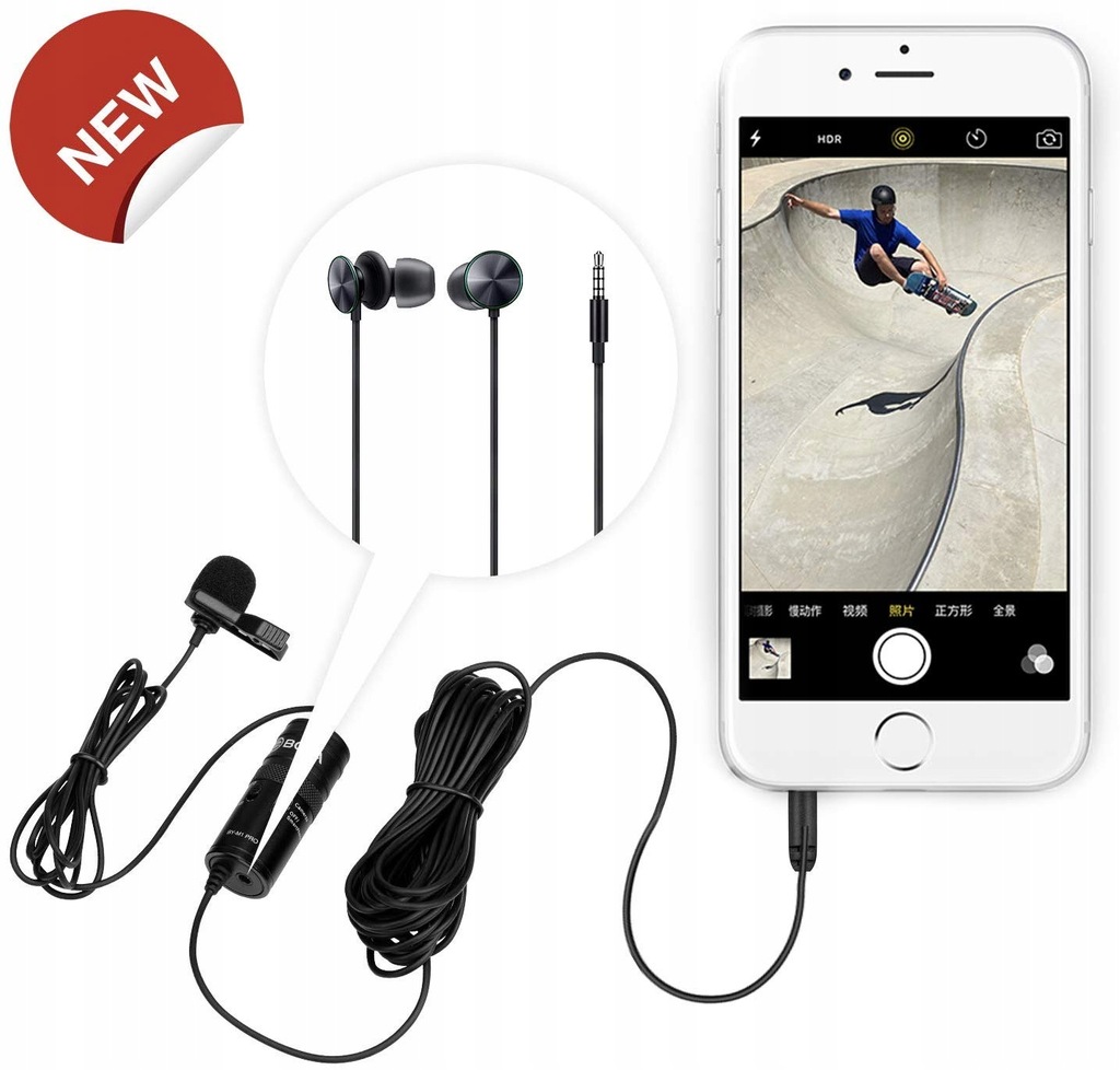 - Przypinany mikrofon krawatowy do współpracy ze smartfonami, kamerami DSLR, rejestratorami wideo, audio, komputerami, itp.