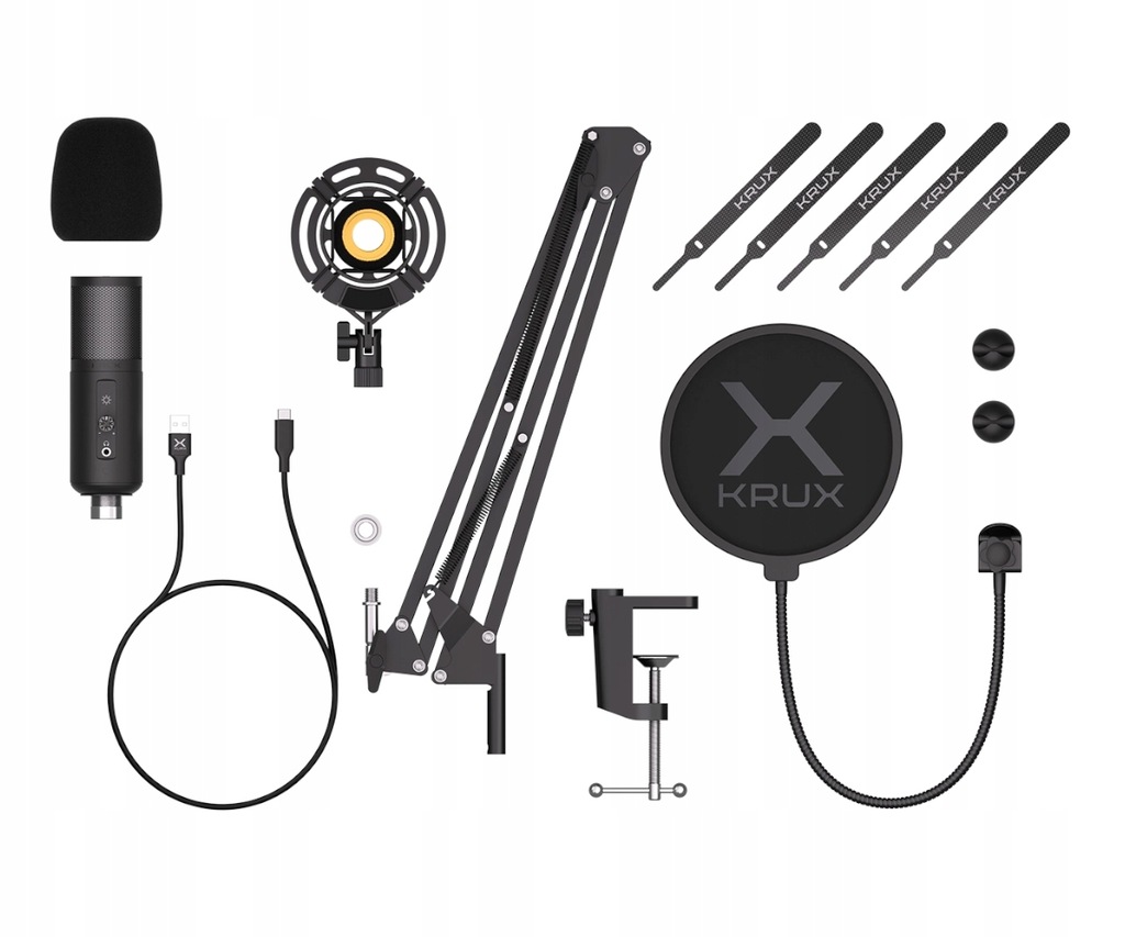 - Dołączone akcesoria: Regulowane Ramię z podstawą / Kosz antywstrząsowy / Pop filtr / Filtr z pianki / kabel USB / Akcesoria montażowe