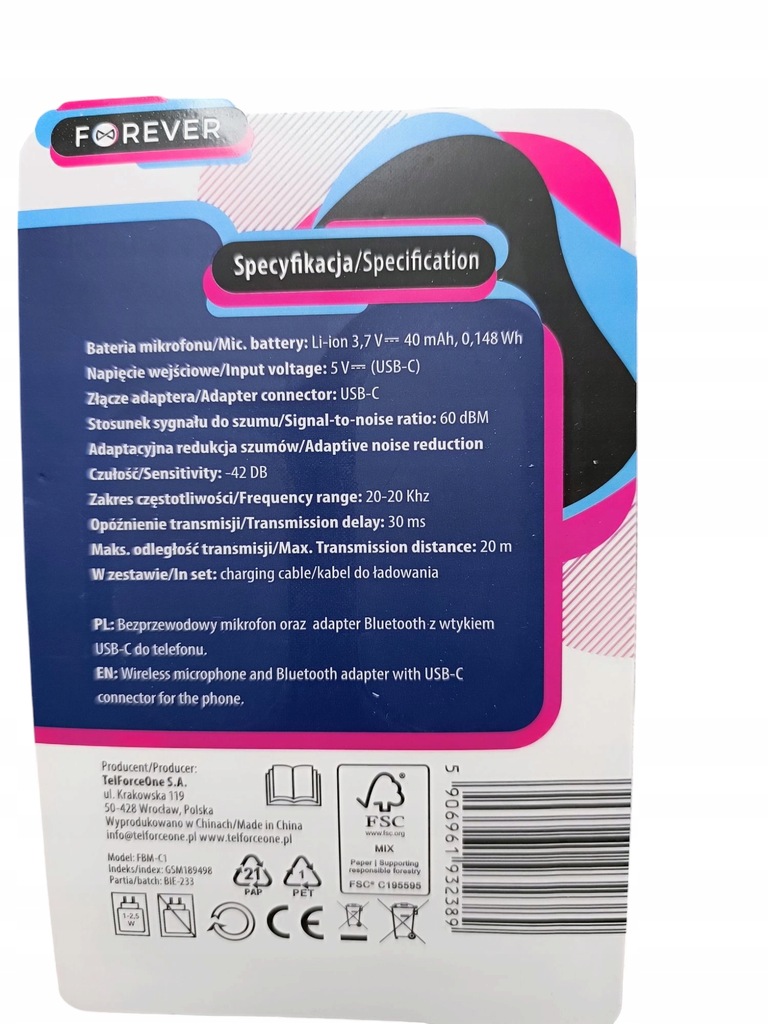 Mikrofon mały bezprzewodowy z adapterem USB - C Forever