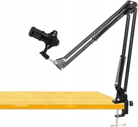 Konstrukcja stalowa z podwójnym regulowanym, ramieniem. Statyw może pasować również do innych mikrofonów.