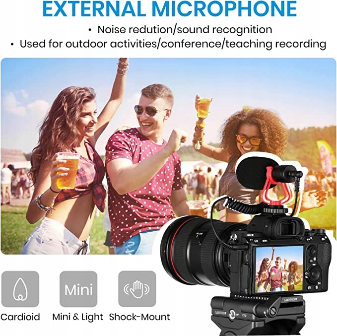 - Wysokiej jakości skraplacz i nagrywanie kardioidów: wbudowana wysokiej klasy kapsułka kondensatorowa zapewnia doskonałe nagranie dźwiękowe w przypadku stosowania z różnymi kamerami DSLR.