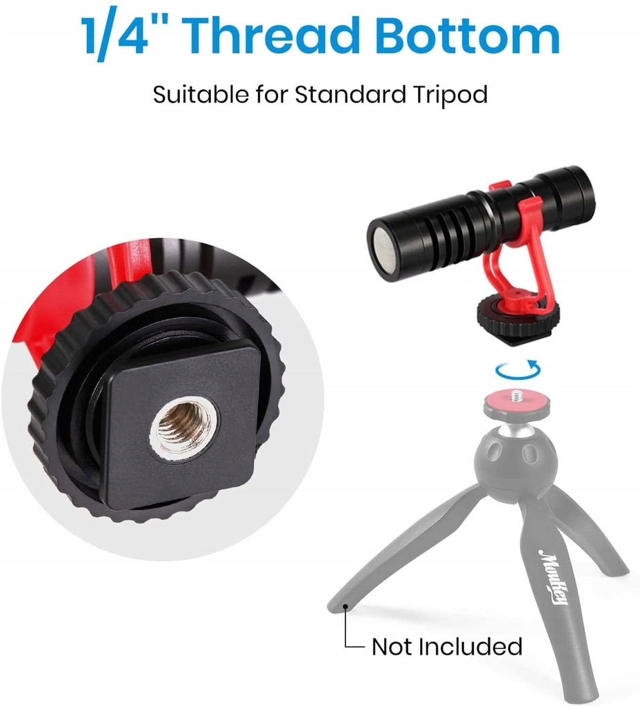 - Efektywnie redukuje hałas: mikrofon jednokierunkowy, przede wszystkim wrażliwy na dźwięki przed kamerą i może zmniejszyć hałas w tle, odpowiedni do rozmów kwalifikacyjnych, vlogowania itd. (Uwaga: Jeśli występuje oczywisty hałas, może się zdarzyć, że urządzenie jest niezgodne lub kabel zostanie włożony nieprawidłowo)