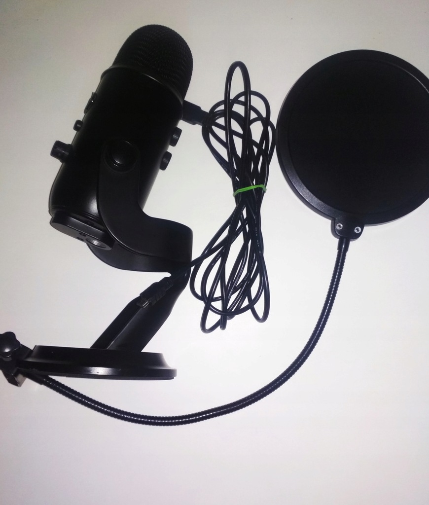 Mikrofon pochodzi z prezentacji, wygląda jak nowy, niemniej na stopce widać że nie ma farby (patrz zdjęcia real poniżej). Na mikrofon udzielam 30 dniowej gwarancji oraz wystawiam pełną fakturę VAT 23%. Brak oryginalnego pudełka (gdzieś się zapodziało, będzie zastępcze lub jest możliwość zapakowania w oryginalne pudełko od białego - biały zostaje w firmie :)), dodatkowo dodaje filtr jak na zdjęciu.
