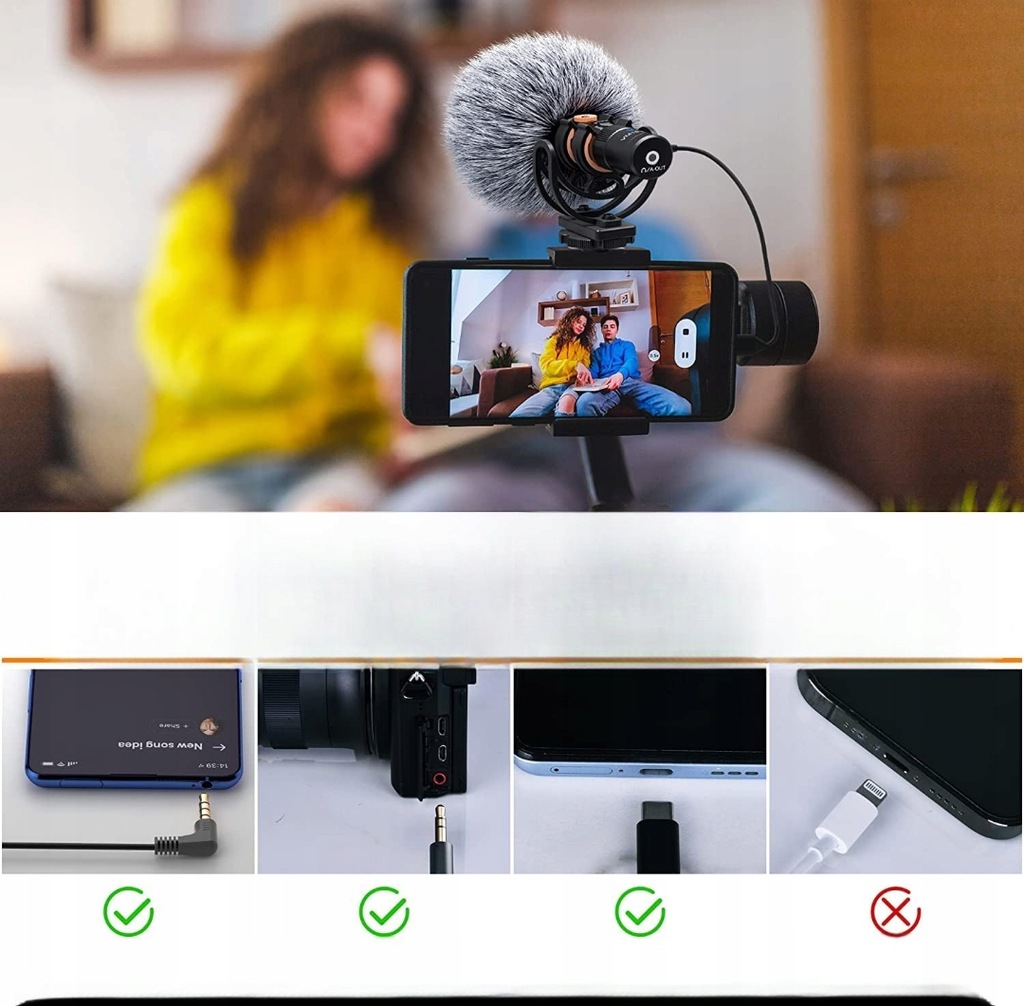 mikrofon kierunkowy ma dwa tryby wyjścia, cyfrowy i analogowy. W trybie wyjścia cyfrowego za pomocą interfejsu USB-C można podłączyć smartfon/komputer. W trybie wyjścia analogowego można go podłączyć do aparatu/smartfona/komputera za pomocą interfejsu 3,5 mm. Mikrofon jest wszechstronny, łatwy do przełączania i pomaga w tworzeniu treści wideo.