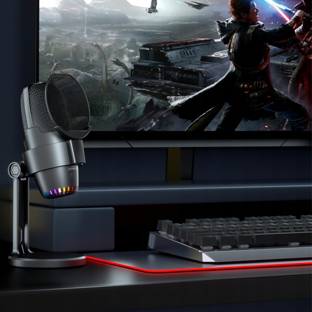 Dotykowy przycisk funkcyjny umożliwia szybkie wyciszenie mikrofonu lub włączenie trybu redukcji szumów, a kompaktowa konstrukcja i stabilny statyw zapewniają komfort pracy – zarówno dla amatorów, jak i profesjonalistów.