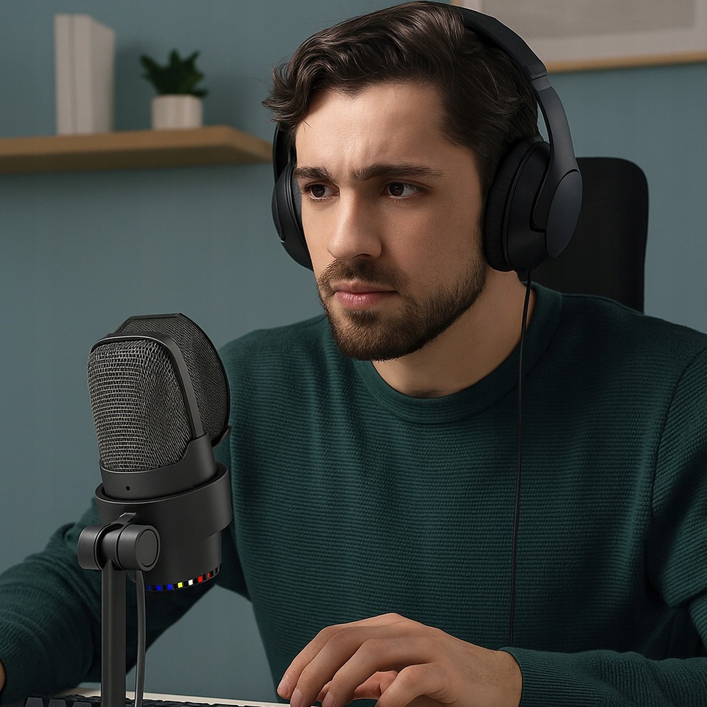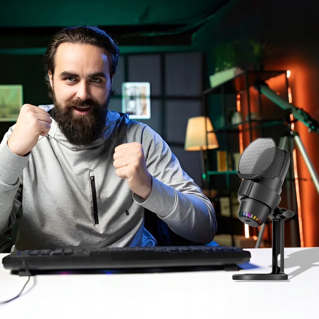 ✅ Ergonomia i wygoda – mikrofon na statywie możesz ustawić pod odpowiednim kątem i wysokością, co zwiększa komfort pracy przy biurku – zwłaszcza podczas streamingu, spotkań online czy nagrań.