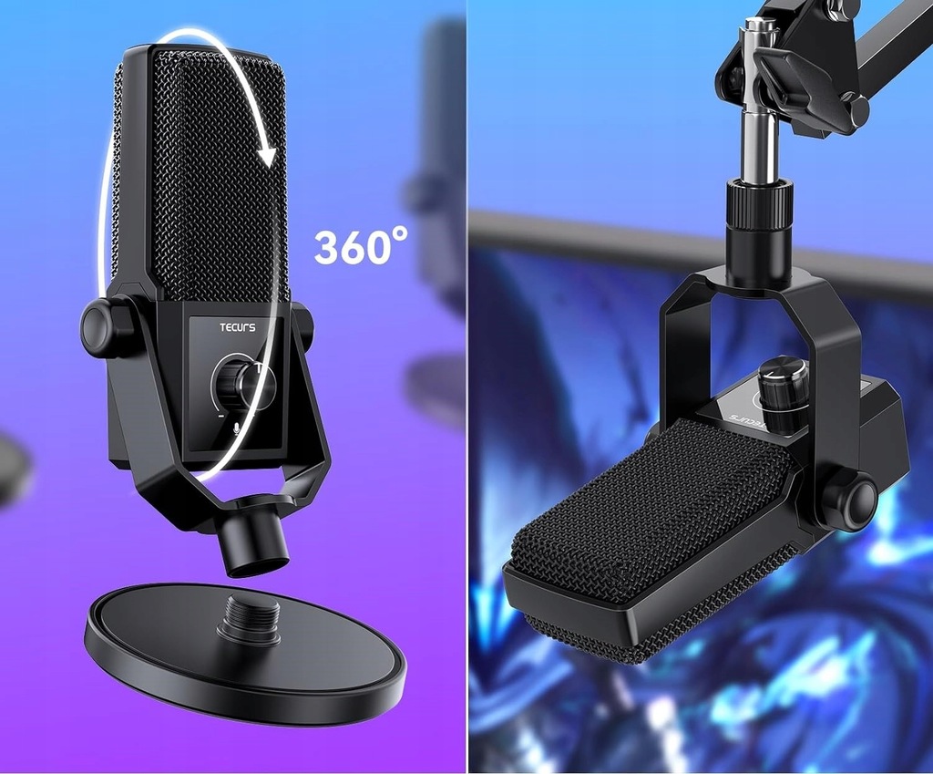 MIKROFON POJEMNOŚCIOWY GAMINGOWY DO KOMPUTERA TECURS MR04 KARDIOIDALNY