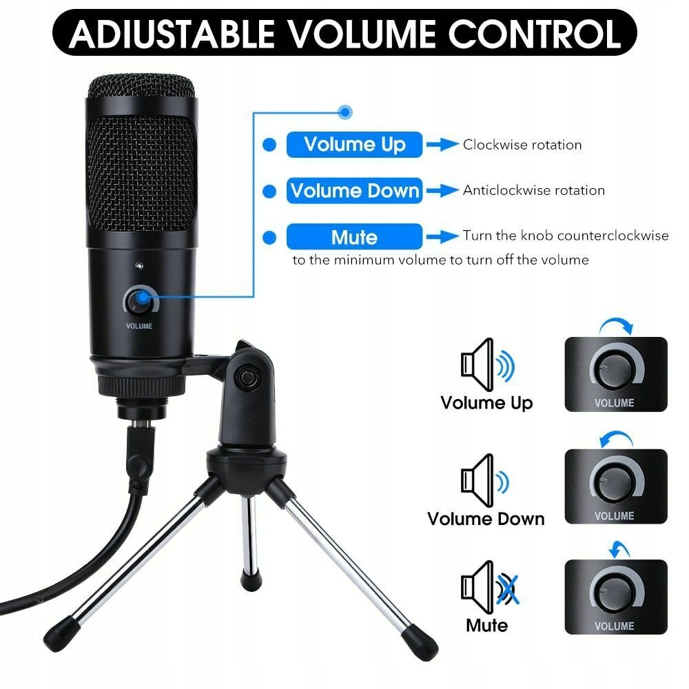 MIKROFON POJEMNOŚCIOWY KARDIOIDALNY USB STOJAK