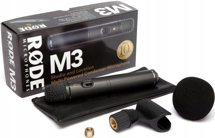 M3 świetnie sprawdzi się zarówno podczas koncertów na żywo, jak również i w studiu. Jego charakterystyka zapewnia wierne odzwierciedlenie brzmienia instrumentów i wokali, podczas gdy szeroki zakres dynamiki umożliwia stosowanie go zarówno przy głośnych, jak i cichych źródłach dźwięku. Røde M3, to także doskonały mikrofon do nagrywania dźwięku w terenie. Model M3 posiada diodę informującą o stanie baterii i filtr górnoprzepustowy. W zestawie znajduje się osłona przeciwwietrzna, uchwyt, a mikrofon może być zasilany za pomocą baterii 9V lub poprzez Phantom 48V.