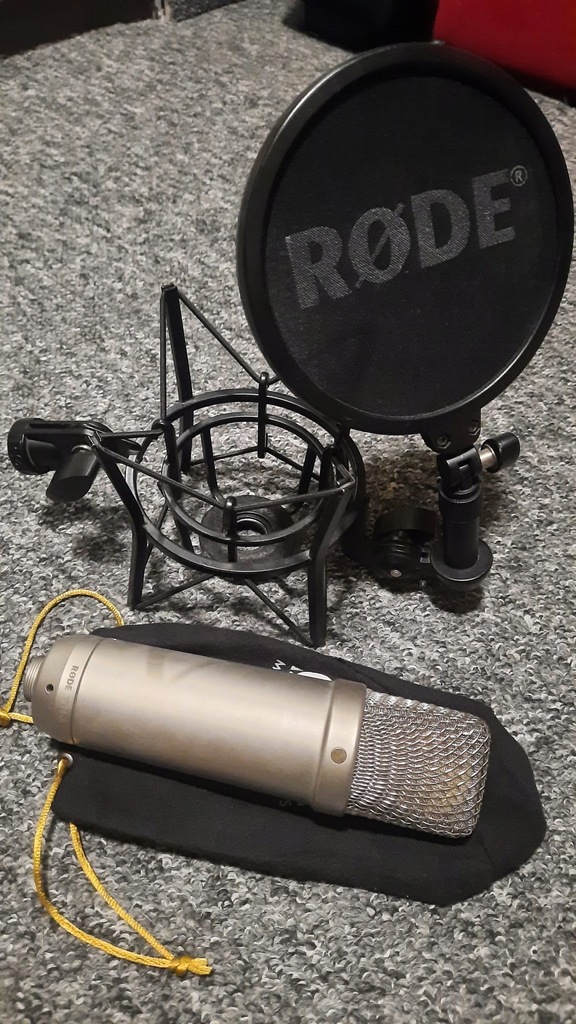 Mikrofon studyjny Rode NT1-A, to jeden z najlepszych mikrofonów w tej cenie pod względem jakości dźwięku i bardzo niskiego poziomu szumów. Mikrofon jest używany ale w 100 % sprawny technicznie i wizualnie, bez żadnych rys ani innych śladów użytkowania. W komplecie pokrowiec na mikrofon oraz uniwersalny metalowy uchwyt mikrofonowy i pop-filtr (cały ten zestaw nagraniowy jest sprzedawany przez Rode jako SM6).