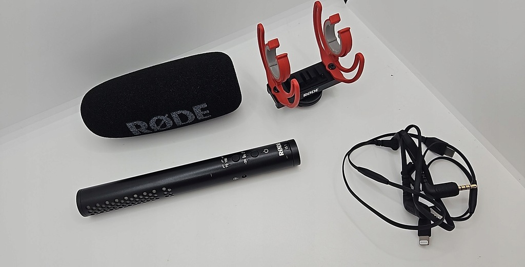 mikrofon, mocowanie Rycote Lyre, osłona przeciwwietrzna, kabel usb-c/usb-c, kabel usb-c/lightning, jack-jack