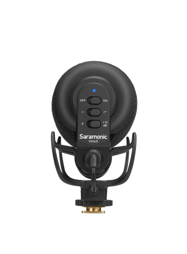 Saramonic Vmic5 to mikrofon pojemnościowy super-kardioidalny oferujący wysoką jakość rejestrowanego dźwięku. Ultralekka obudowa zapewni optymalny komfort pracy z aparatami DSLR, kamerami i rejestratorami audio. W wygodny sposób zainstalujesz go na gwintowanej szybkozłączce lub zimnej stopce, a specjalnie zaprojektowany system amortyzacji pozwoli zneutralizować wibracje i wstrząsy. Mikrofon umożliwia redukcję niepożądanych dźwięków z otoczenia, oferując jednocześnie filtr górnoprzepustowy oraz wzmocnienie +10 dB. Wbudowana bateria o pojemności 2000 mAh zapewnia do 150 godzin pracy, a dodatkowe wyjście mini Jack 3,5 mm pozwala podłączyć do urządzenia słuchawki i skorzystać z wysokiej jakości odsłuchu pozbawionego latencji.