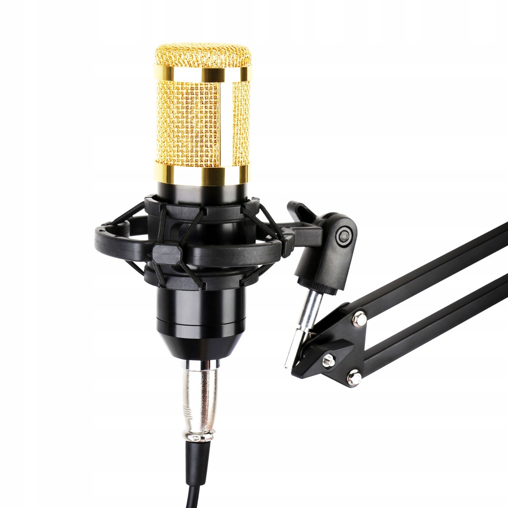 Mikrofon pojemnościowy o charakterystyce super-kardioidalnej w zestawie z akcesoriami do nagrywania rozmów, śpiewu czy instrumentów.