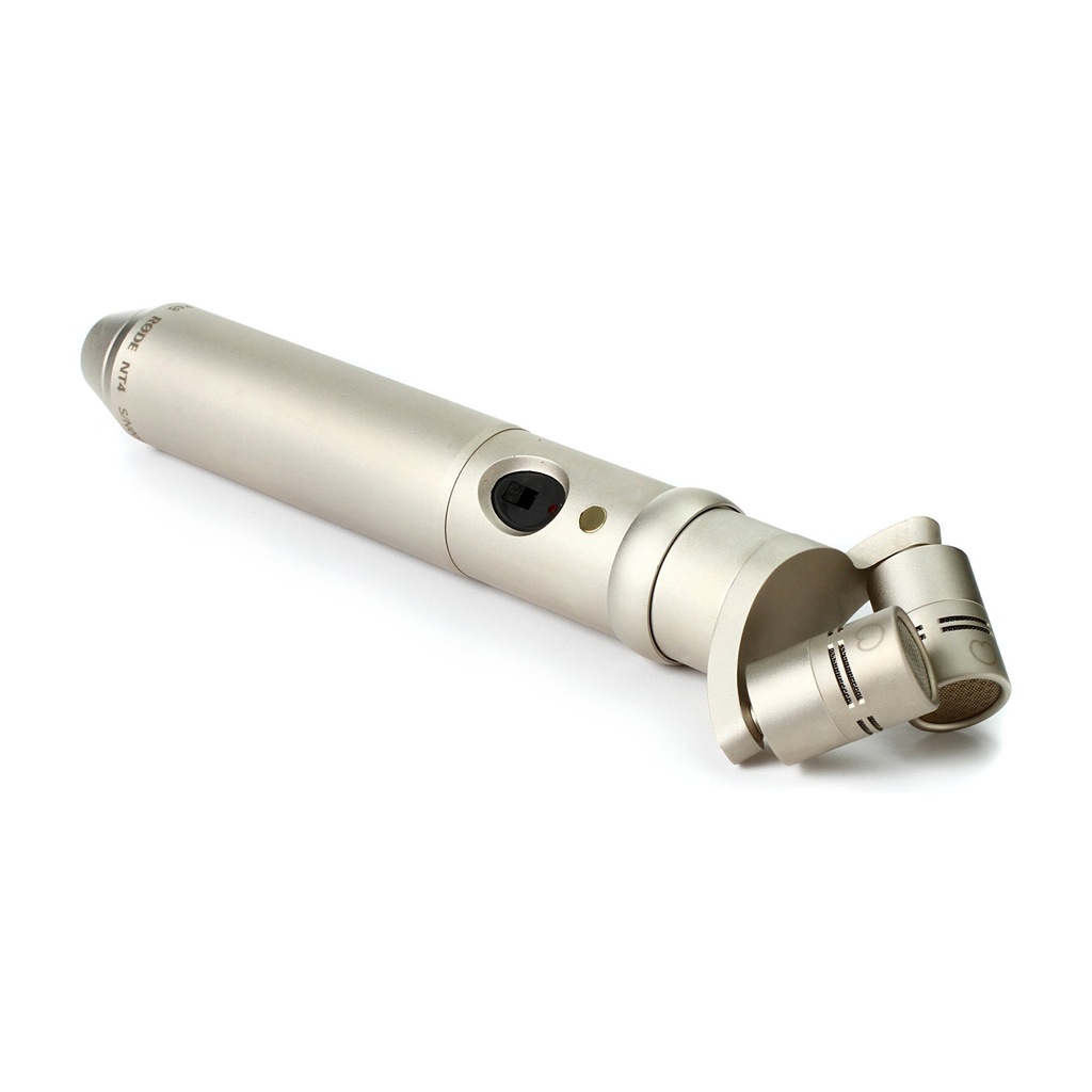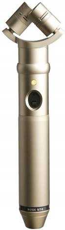 RØDE NT4 to stereofoniczny, pojemnościowy mikrofon X/Y wyposażony w 1/2-calowe kapsuły i przystosowany do pracy w studiu i w terenie. NT4 rozwiązuje odwieczny problem profesjonalnej rejestracji stereofonicznej eliminując kłopoty związane z zakupem mikrofonów parowanych oraz zestawu statywów i adapterów. Dzięki ustawieniu kapsuł pojemnościowych pod kątem 90 stopni w konfiguracji X/Y oraz ich perfekcyjnemu sparowaniu, mikrofon pozwoli zarejestrować dowolne źródło dźwięku z zachowaniem znakomitej stereofonii i bogactwa detali. NT4 dysponuje dynamiką równą 128 dB, pozwala na pracę z ciśnieniem akustycznym na poziomie 143 dBA SPL oraz cechuje się małym poziomem szumów własnych. Kapsuły można spolaryzować standardowym napięciem Phantom lub wykorzystać zasilanie bateryjne, dzięki czemu mikrofon świetnie sprawdzi się zarówno w studiu, jak i podczas pracy w terenie. Razem z mikrofonem użytkownik otrzymuje walizkę, osłonę przeciwwietrzną, kabel XLR - mini-jack oraz podwójny kabel XLR, dzięki którym nie będzie problemów z podłączeniem go do rejestratora DAT lub urządzeń wyposażonych w profesjonalne złącza XLR. CECHY: