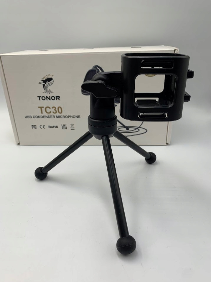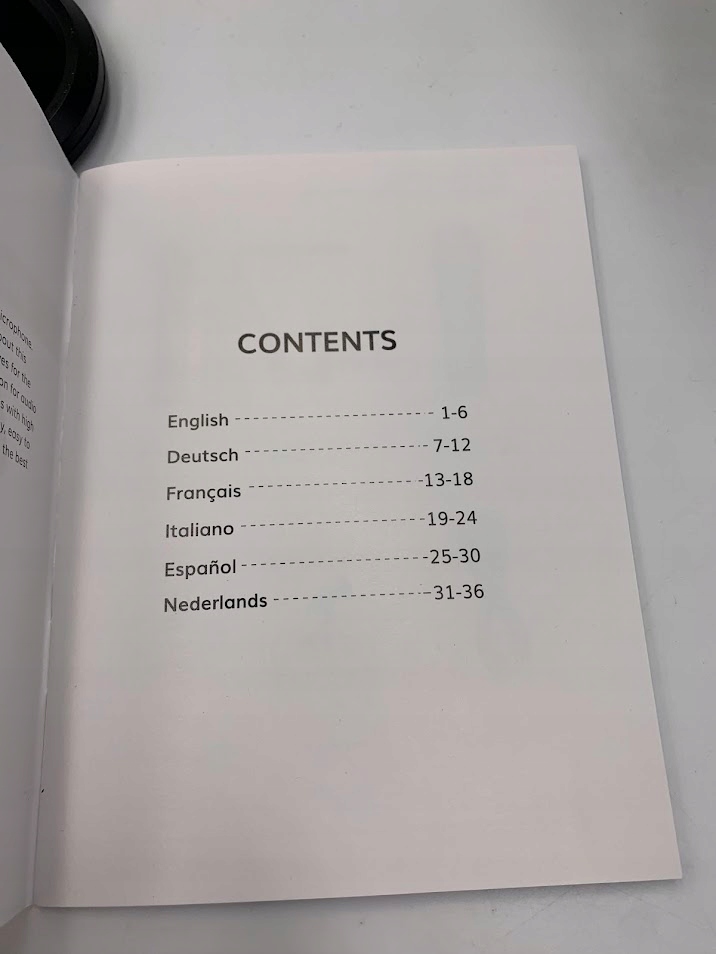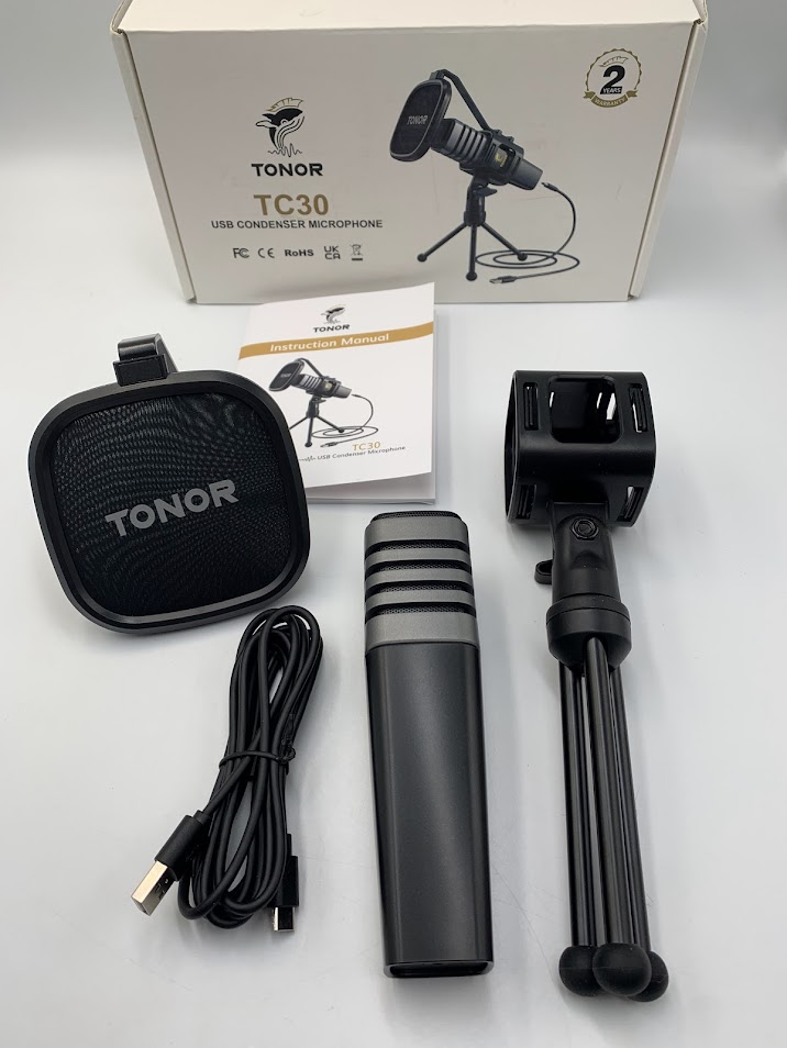 - Sprzęt montażowy: 1 x mikrofon pojemnościowy, 1 x uchwyt, 1 x składany statyw mikrofonowy, 1 x filtr pop, 1 x kabel USB typu C na USB-A 2.0, 1 x instrukcja obsługi (brak j.polskiego).