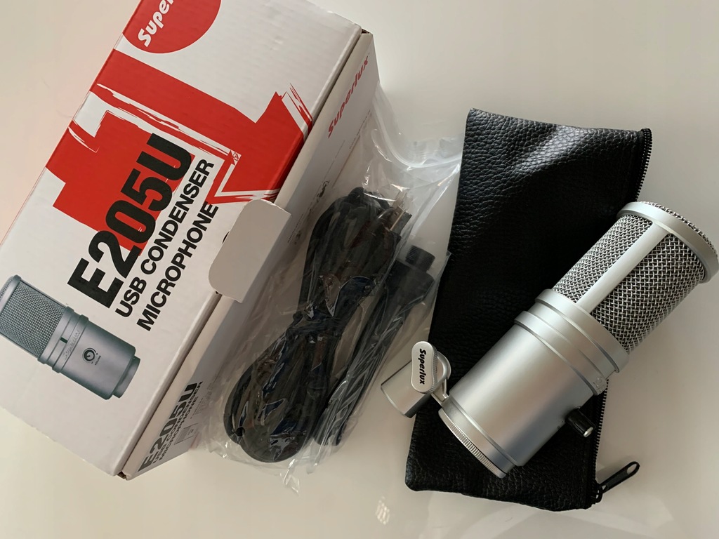 Dobrej jakości mikrofon pojemnościowy SUPERLUX E205U. Mikrofon przeznaczony dla użytkowników laptopów, PC. Kompatybilny z systemem Windows, iOS (Mac), Linux. Posiada wejście na słuchawki, co jest fajnym atutem, pozwalającym na odsłuch nagrań. Mikrofon nadaje się do nagrywania podcastów, muzyki, śpiewu, filmików na Youtube.