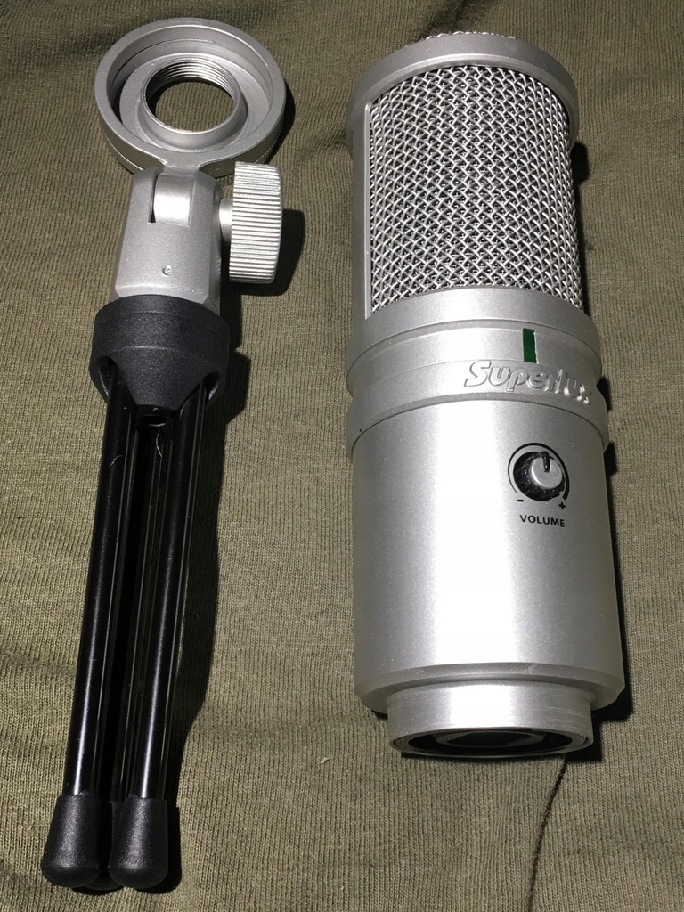 Mikrofon jest w stanie idealnym, działa bez zastrzeżeń, polecam dla każdej osoby nagrywającej wokal. Używany był tylko do teamspeaka i różnych gier. W pakiecie dodaje kabel i statyw (patrz zdjęcie)