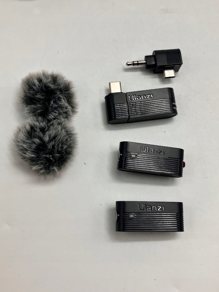 W zestawie dwa mikrofony bezprzewodowe oraz odbiornik ze złączem do telefonów posiadających port USB TYPE-C.