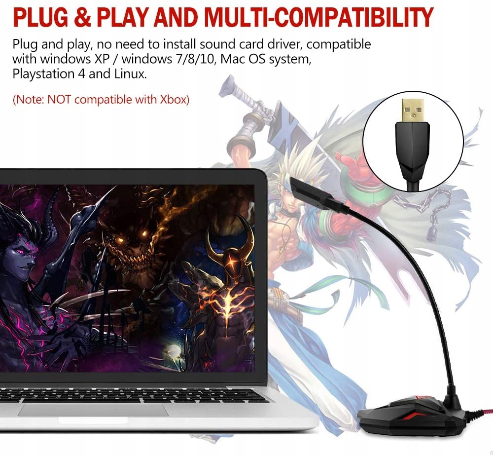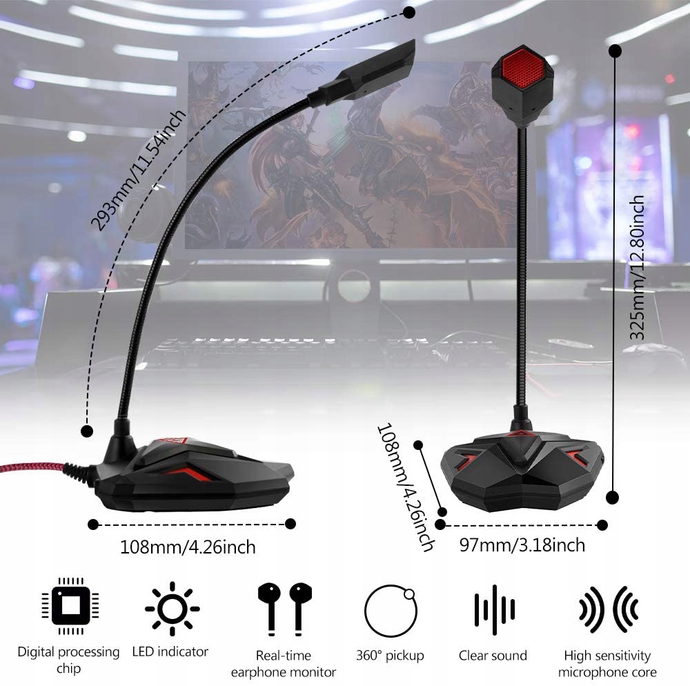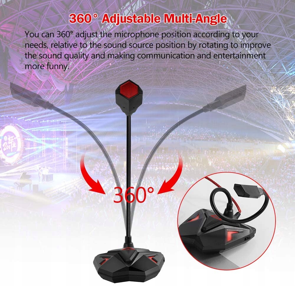 Regulowana gęsia szyja w pozycji 360 stopni. Przyjmując projekt metalowej rury na gęsiej szyi, przechwytuje dźwięk z 360 stopni z wysoką czułością, w najlepszym możliwym miejscu dla dźwięku do gier na komputerze, czatu, podcastu, Skype, nagrywania z YouTube, śpiewu, konferencji itp.